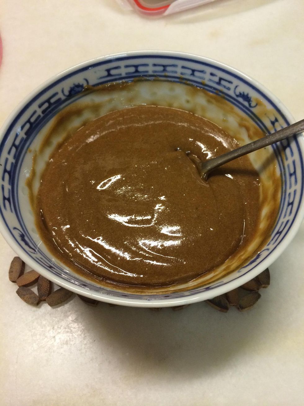 The mixture should be thick enough to coat the back of your wooden spoon thickly. This will take around 10 minutes. Remove the pandan leaves.