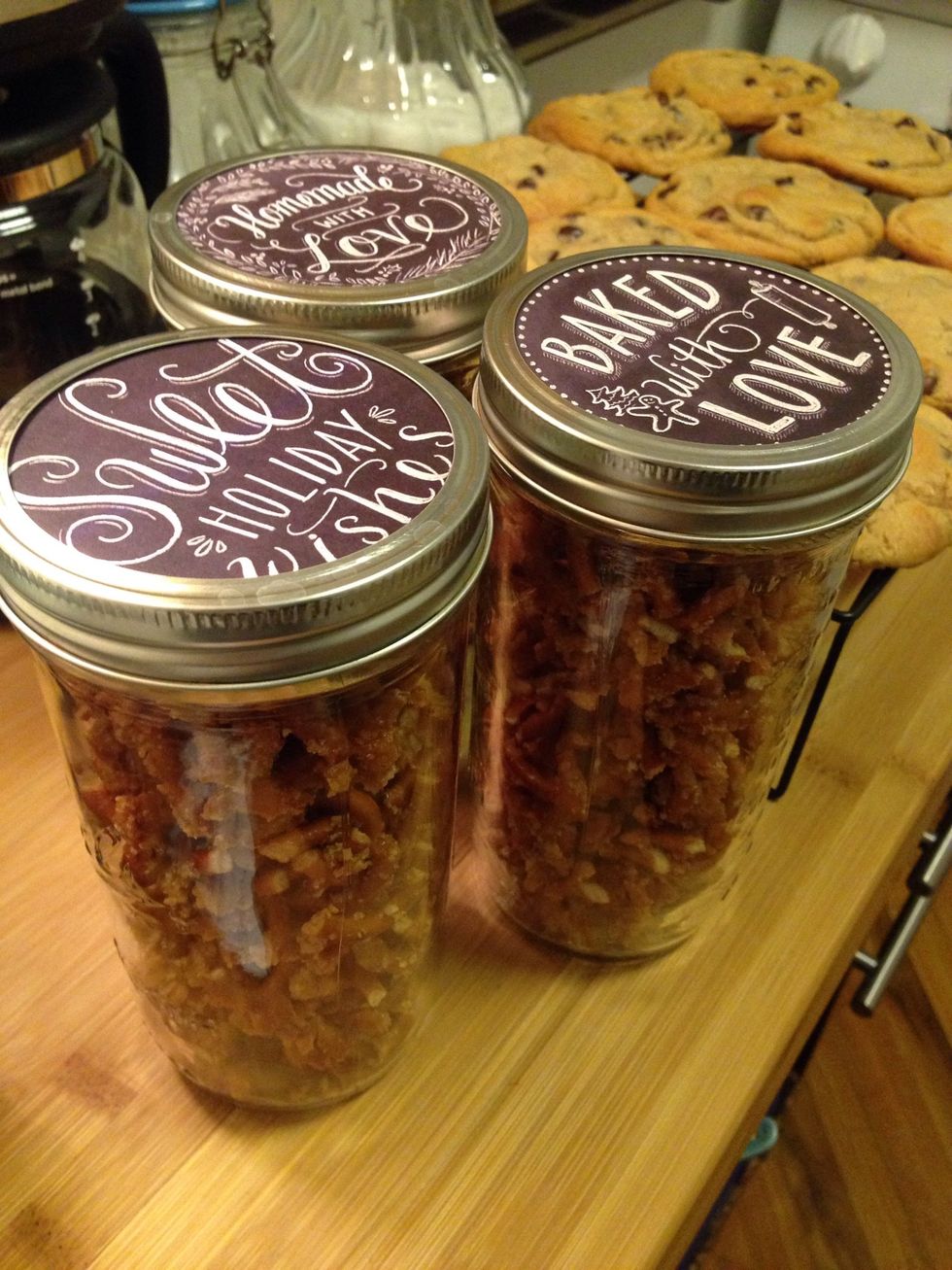 Put in air-tight containers once they have been cooled and broken apart - they will stay fresh for one week and make GREAT holiday gifts! :)