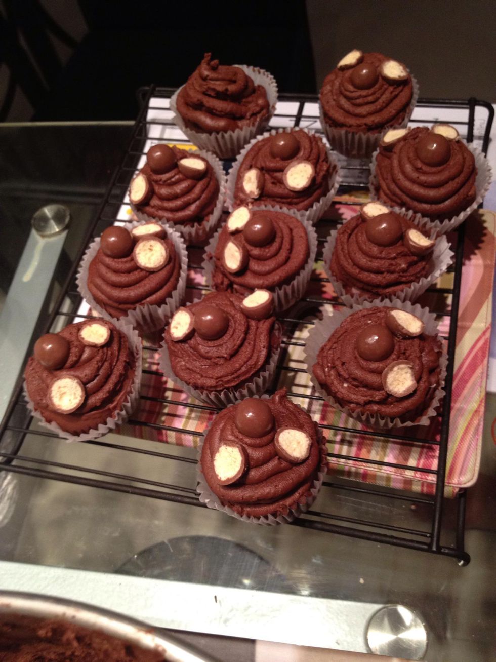 Beat until creamy. Wait for the cake to cool down or you'll get runny face cupcake.