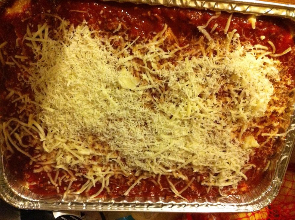 Add a layer of the cheese mixture and than sauce. Keep doing this until you have reached your desired height. I think for the pan I cooked tonight it is 3 layers.