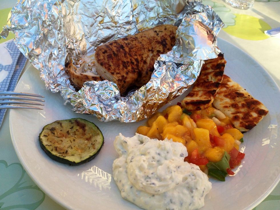 This is a salsa without cilantro since some family members don't fancy it. The mild heat instead comes from the chutney. You can of course also add chili to spice it up.