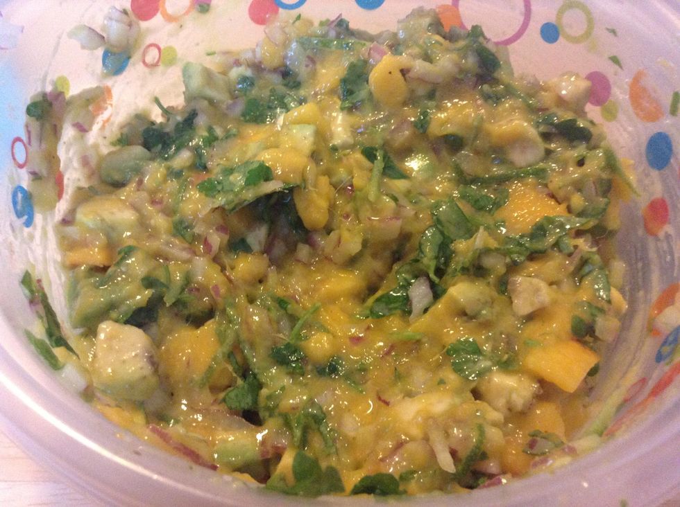 In the end our avocados and mangos were too ripe, but they taste fine just the same. We'll be adding this to our fish tacos I'm about to make a guide for.