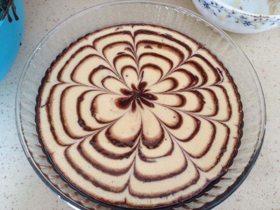 Put a little of your white cake dough and then on top of it put a little bit of your black cake dough 😉