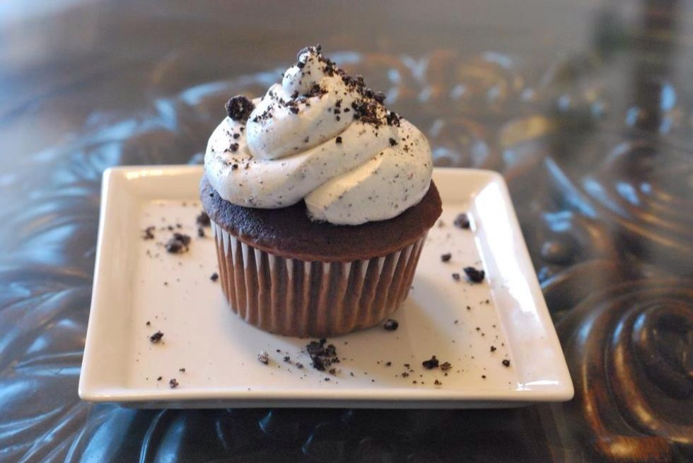Mix until smooth. If your frosting is too thick, add 1 teaspoon of heavy cream at a time until you're satisfied. You are done! You can eat it straight from the bowl or...
