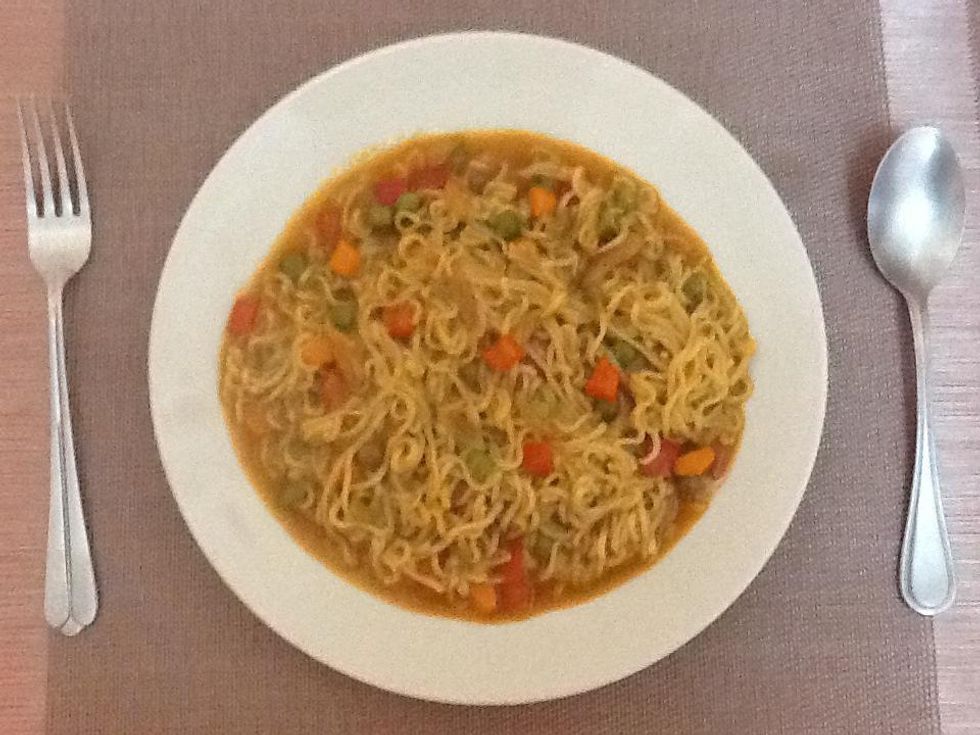 Put water as per the cooking instruction given on the back of the noodle pack.