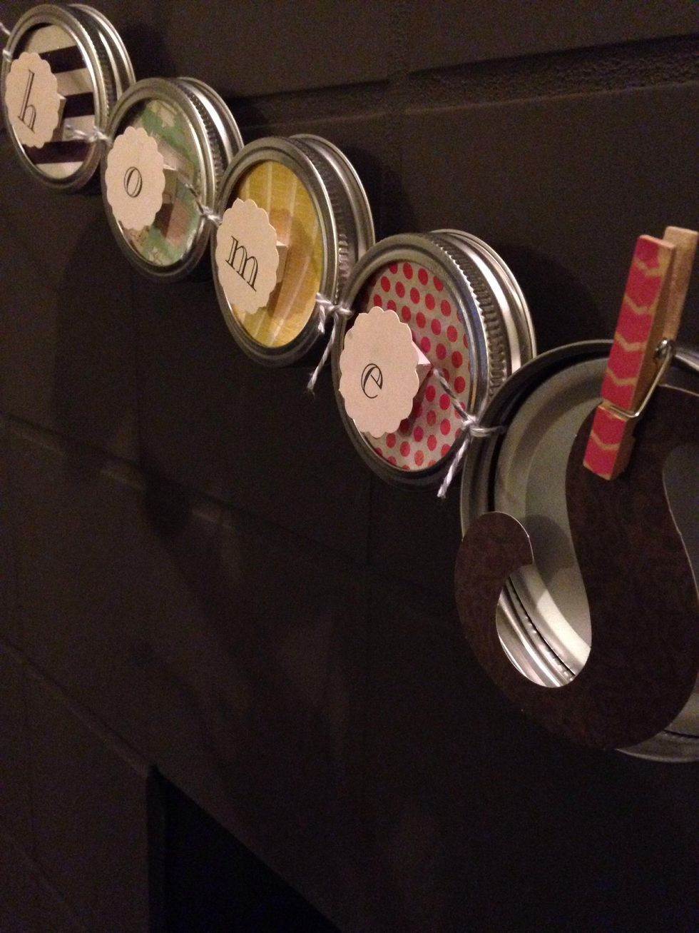 Hot glue the clothespins onto the top of the 5 large lids. Insert the "sweet" letters.
