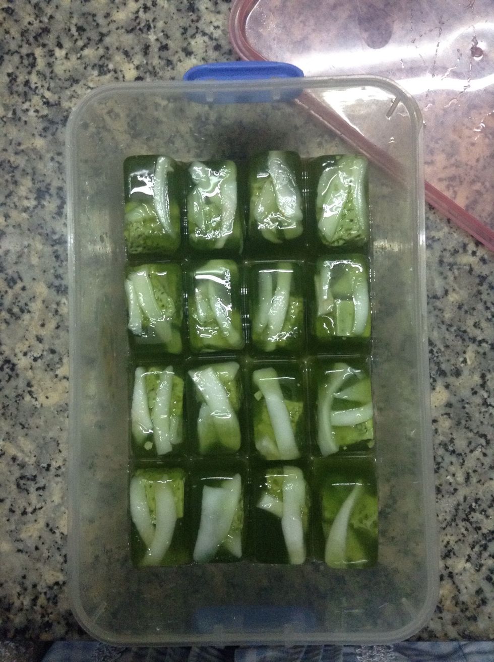 Pour the jelly mixture, you might want to work fast because the jelly might harden fast, let it cool a little bit and put it in the fridge.