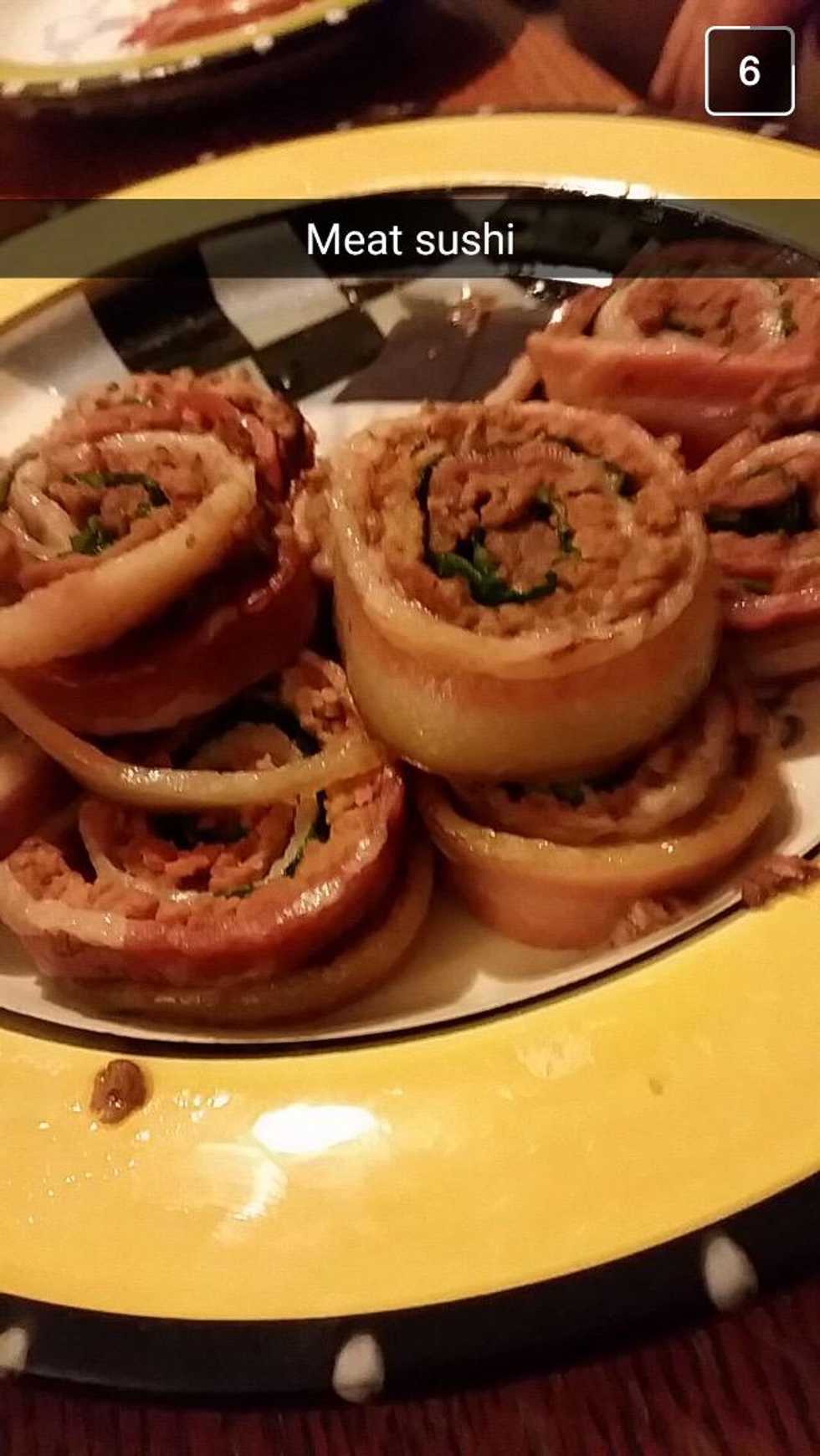 Here is the original video I saw of how to make meat sushi. http://youtu.be/5gv86vO9zCw