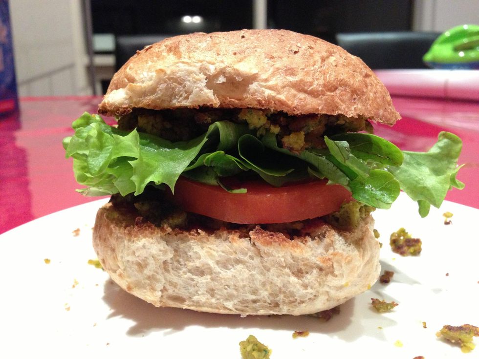 If your lazy like me and you got your chickpeas from a can, strain and rinse them or your patties will smell like cat food