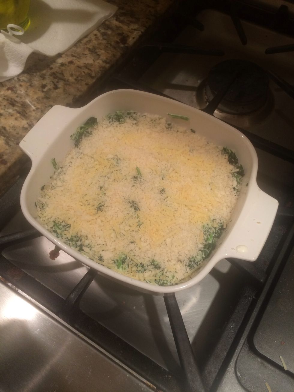 Put into the oven as well. Cook the spinach maria for about 20 to 25 minutes and the chicken for about 30