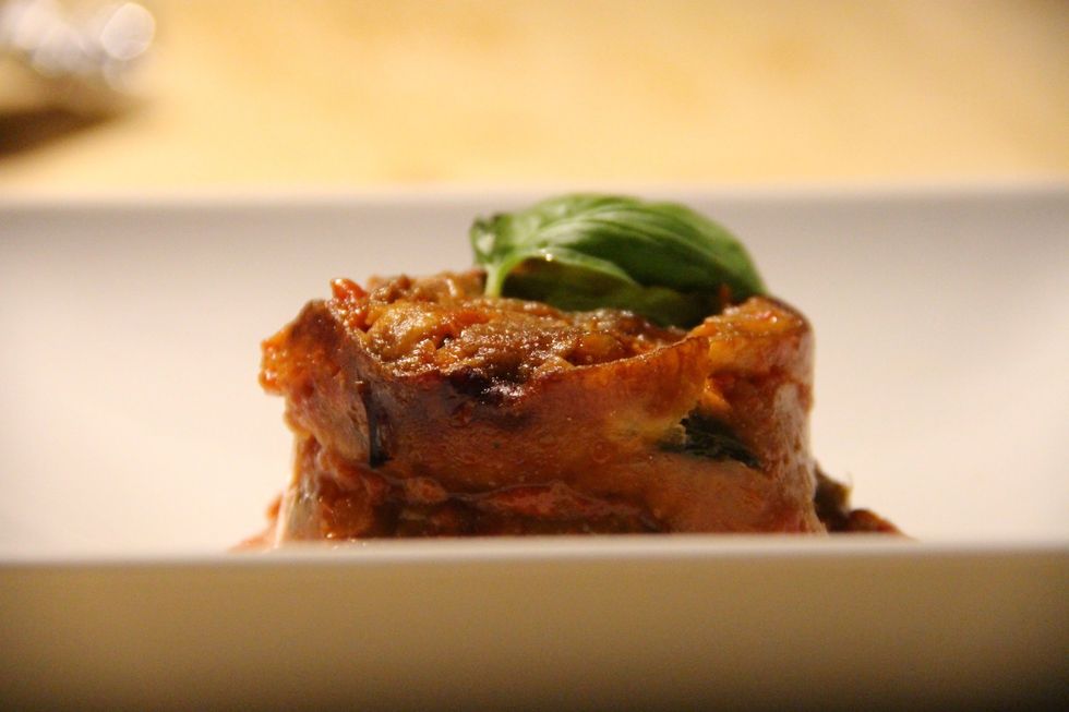 Continue making layers till you arrive to the top and sprinkle a last layer of parmesan cheese