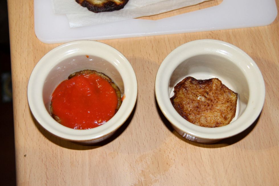 Put on bottom of pan a slice of eggplant