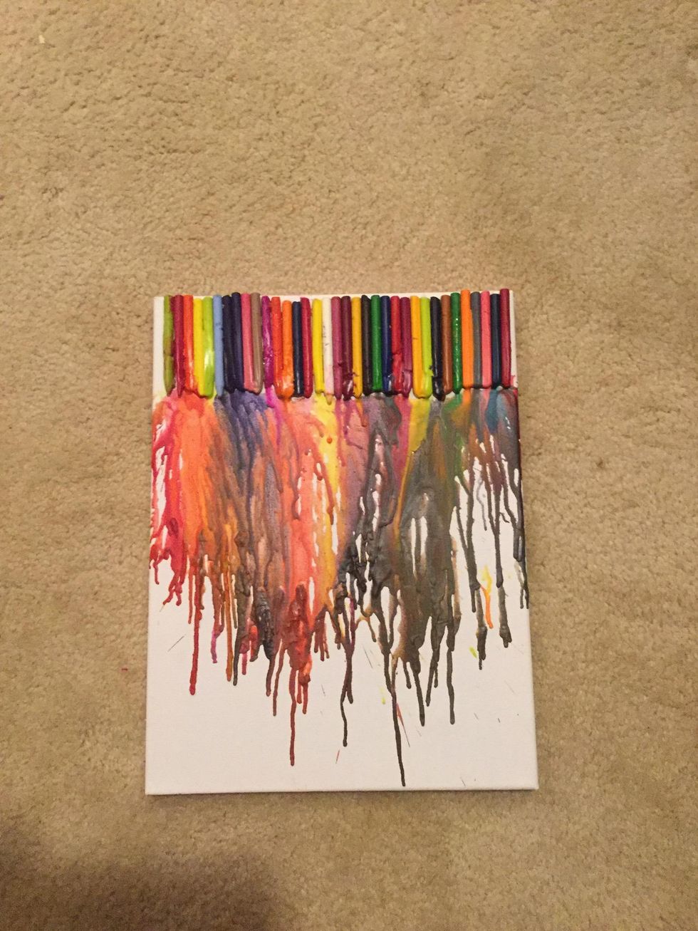 Then get your hot glue gun and glue the crayons down to the top of the canvas.