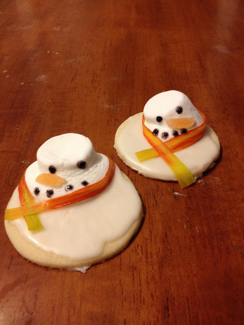 Use black decorating gel to make coal eyes and mouth....complete!!