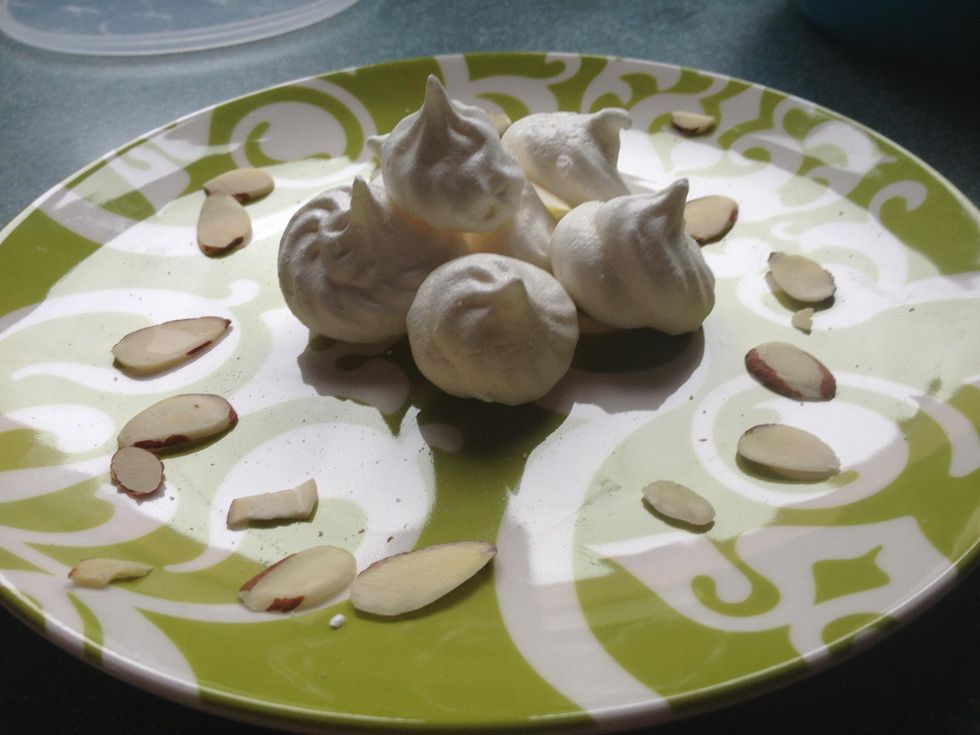 With a electric mixer mix the egg whites to white fluff then add sugar and mix until mixture hold itself on whisk