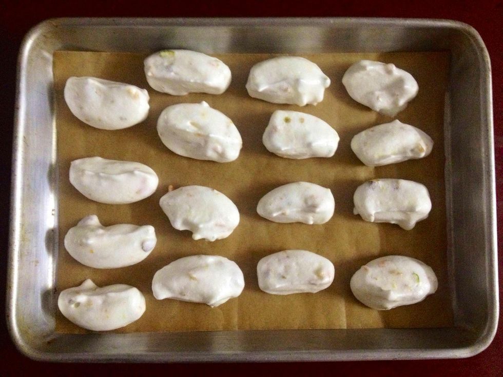 Use two spoons flicking on each other to form bite-sized shapes. Then follow baking steps of meringue guide used. Store baked meringues in freezer and enjoy this dessert every now and then.