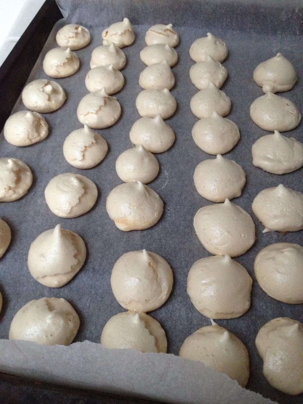 Cover a baking sheet with parchment paper. Press the pastry bag to form a meringue (do not put the mixture on your hands).