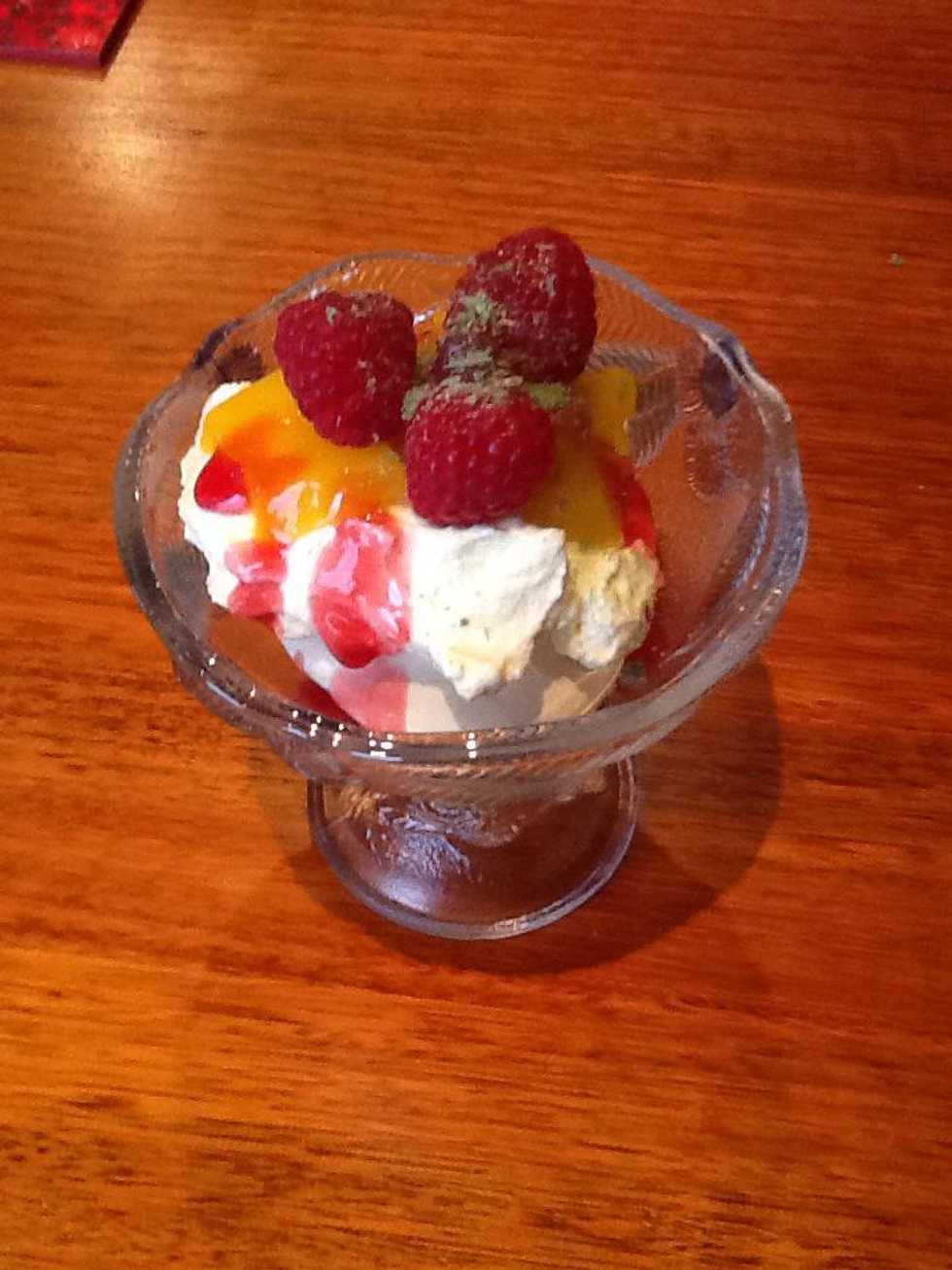 Present your meringues with anything e.g cream, peppermint crisp, raspberries, summer berries, mangoes, and banana.