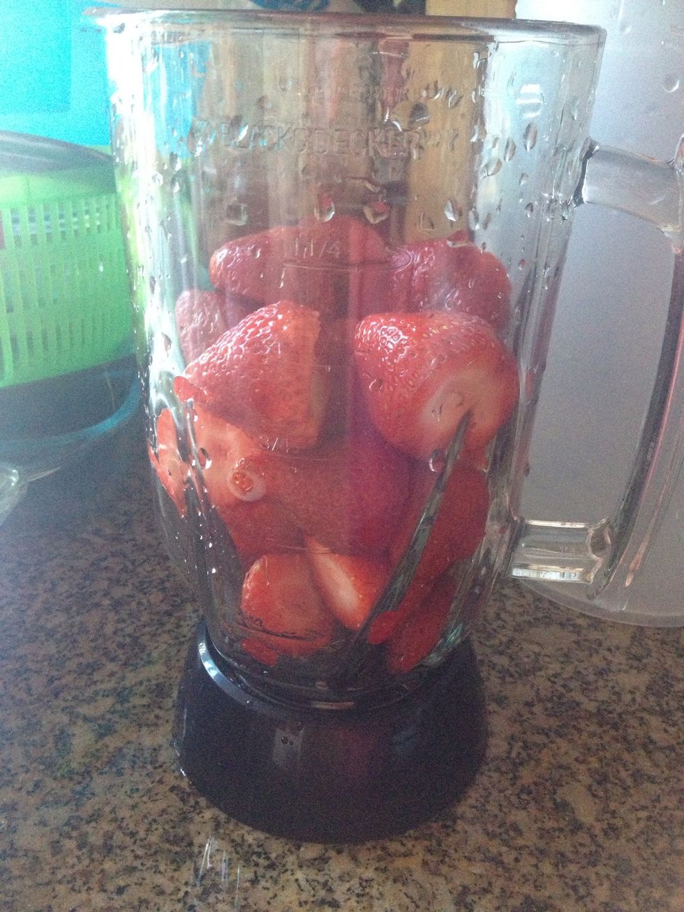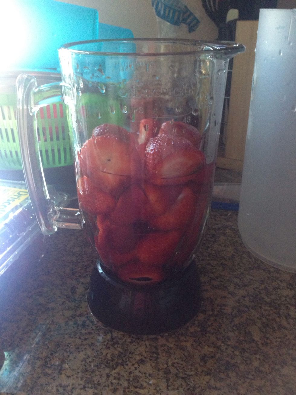 I add about 4-5 cups of strawberries to a blender and put enough water to cover strawberries