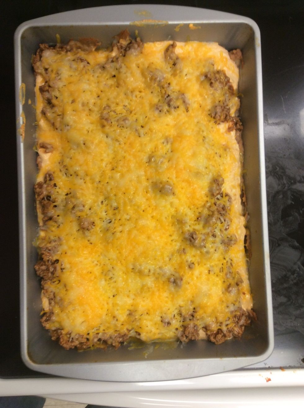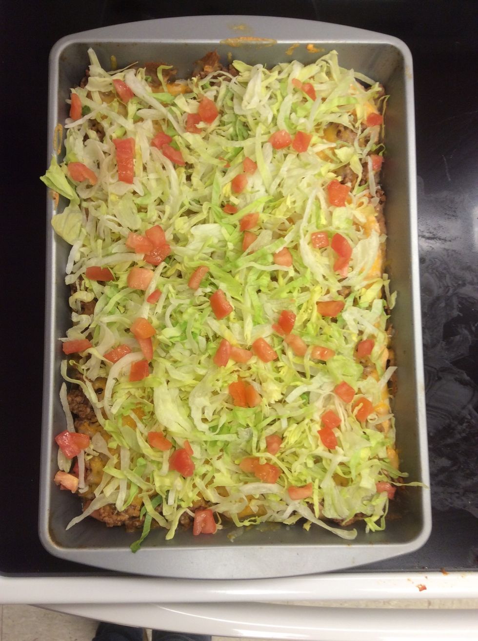 Add the cream cheese and sour cream mixture on top of the refried beans