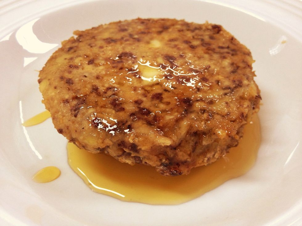 The banana cake! You can topped ith with anything you like e.g., pecans. walnuts, ice cream, peanut butter, melted choco ... but I prefer to topped ith with ...