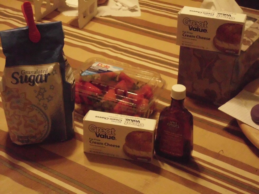 Once the strawberries are on, the next step is take the strawberry jelly out, and put into a bowl. "Now you do not need to use strawberry jelly for this step, just about any berry jelly will do".