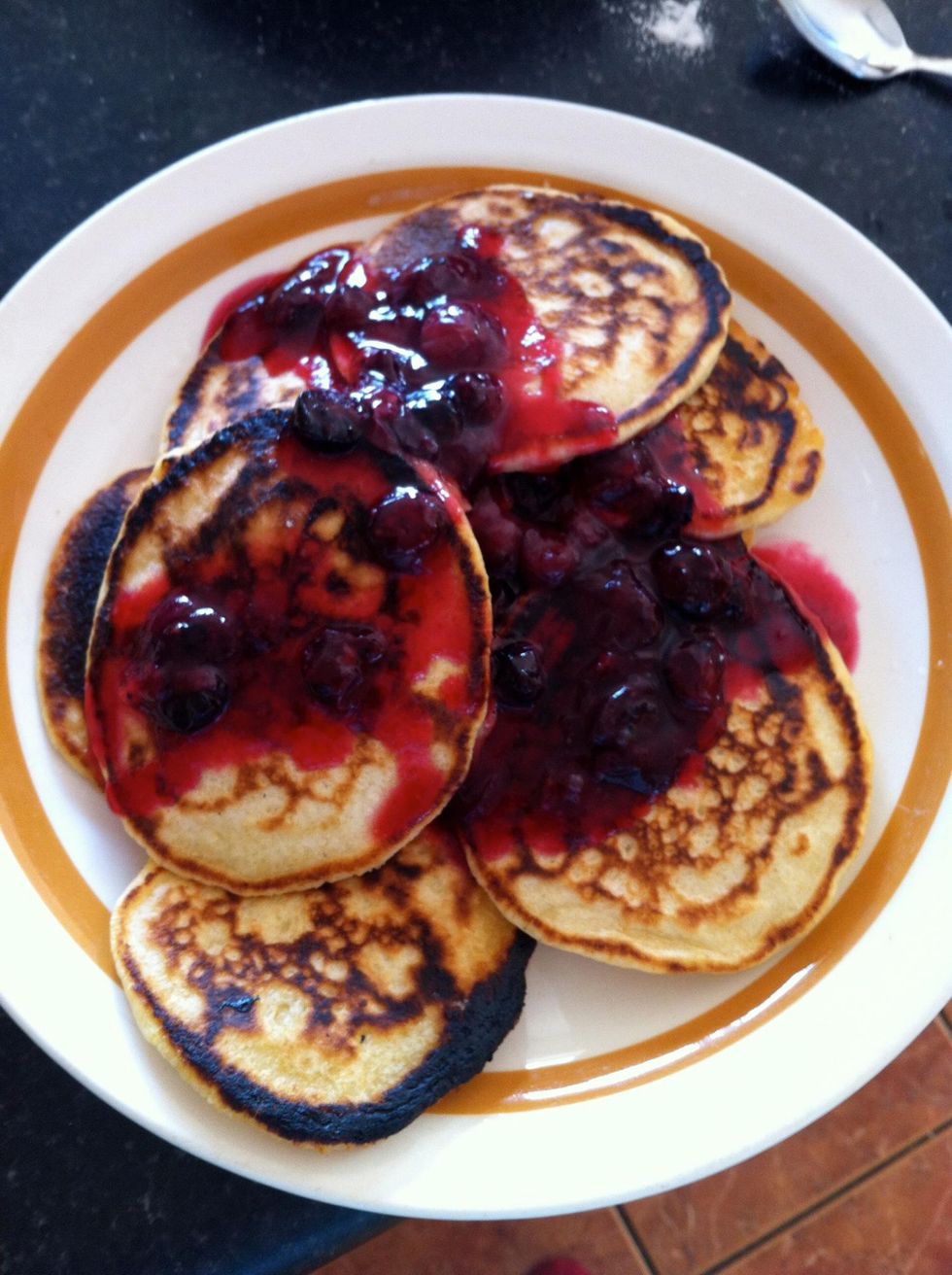 For the sauce, put the berries, syrup and a teaspoon of water into a pan and when the berries pop it's ready!