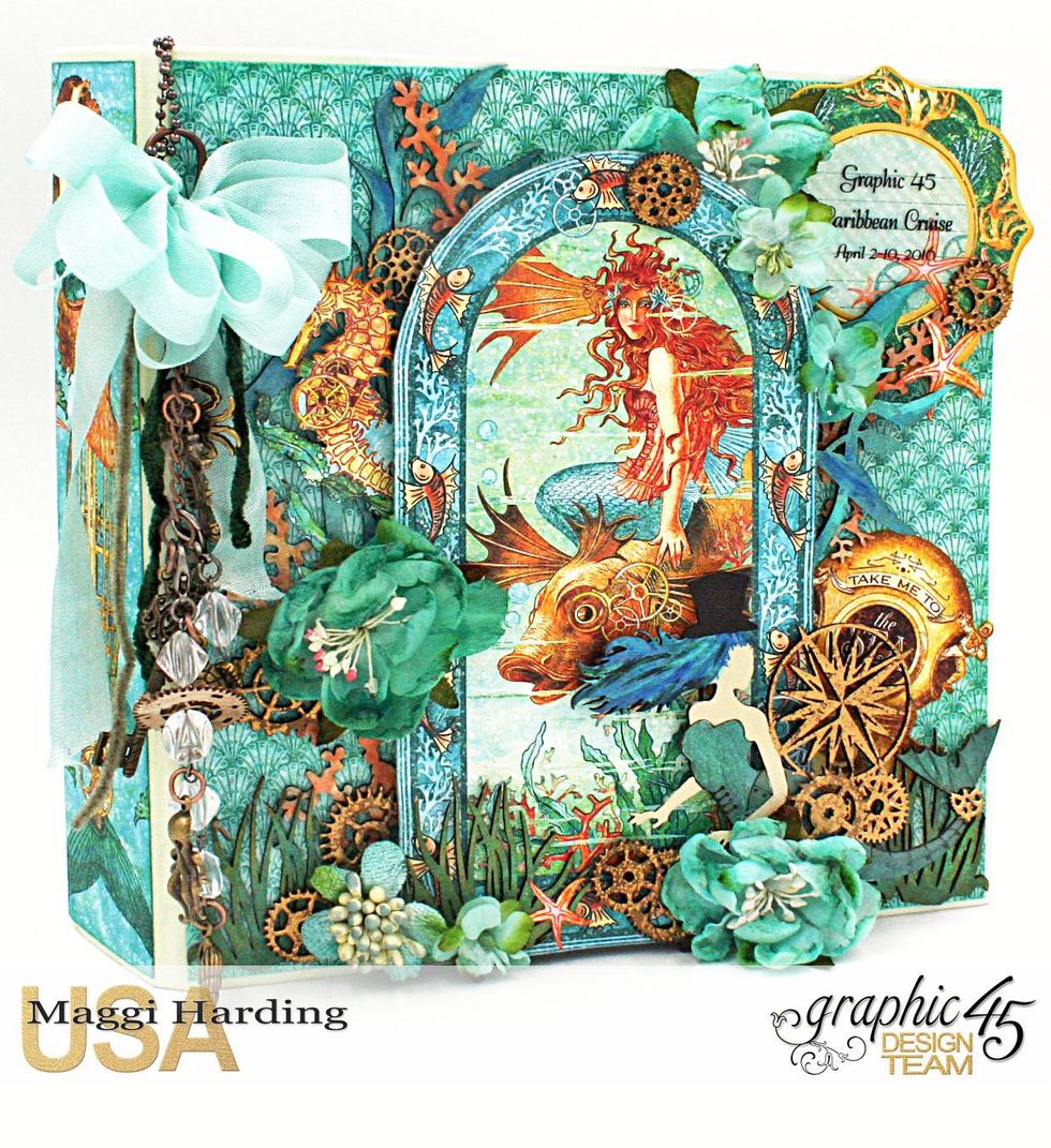 Back of mini, images from 12 x 12 Mermaid Melody, base paper is Wild Wild Waves cut to 8 x 8.5"
