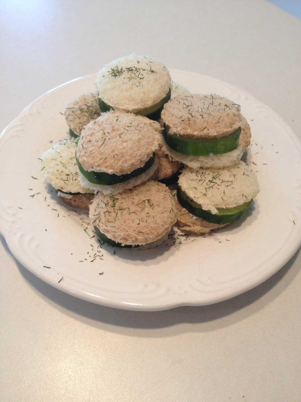 Add cucumbers to wheat circles and sprinkle with salt and pepper if desired.