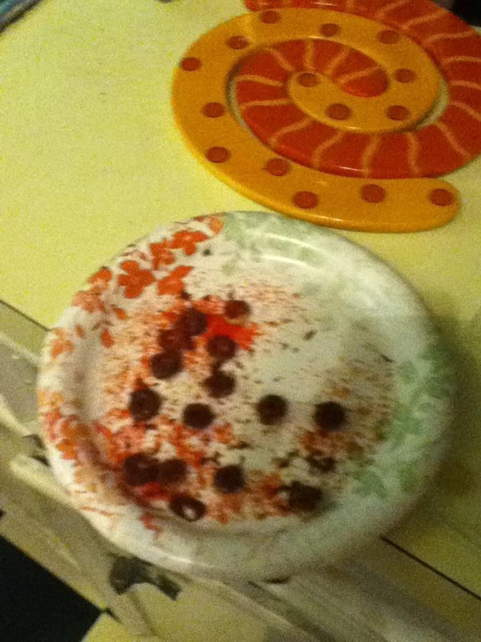 Put chocolate chips in microwave for about 1 minute and 30 seconds, or until melted.