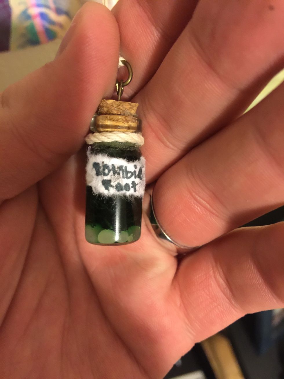 When you're ready to seal up your bottle of wonderful things, place some super glue around the edge of the cork, or inside the lid. This helps keep it in and from falling out.