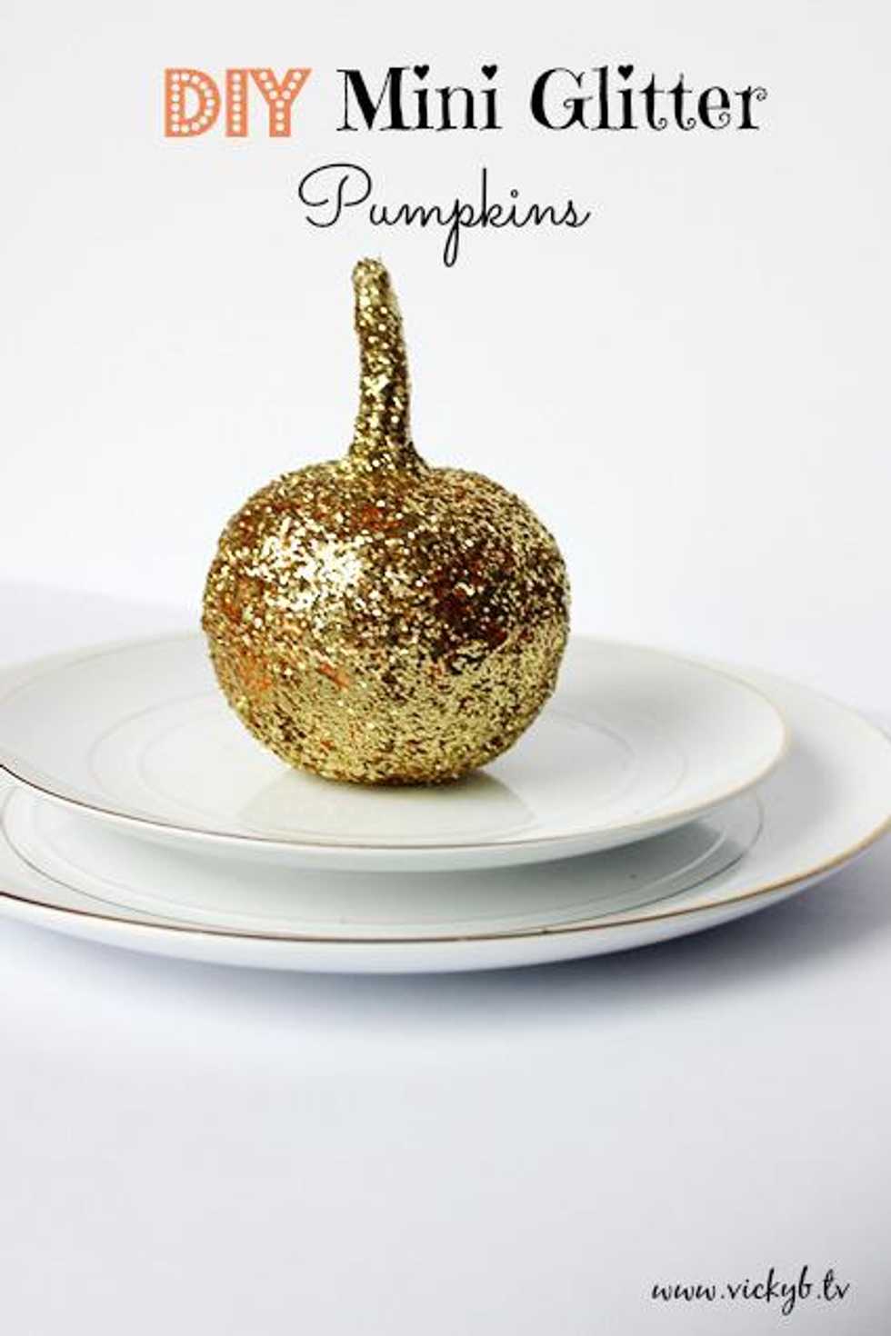 Apply Mod Podge where ever you missed a spot. I let some of the orange from the pumpkin peek through the glitter.