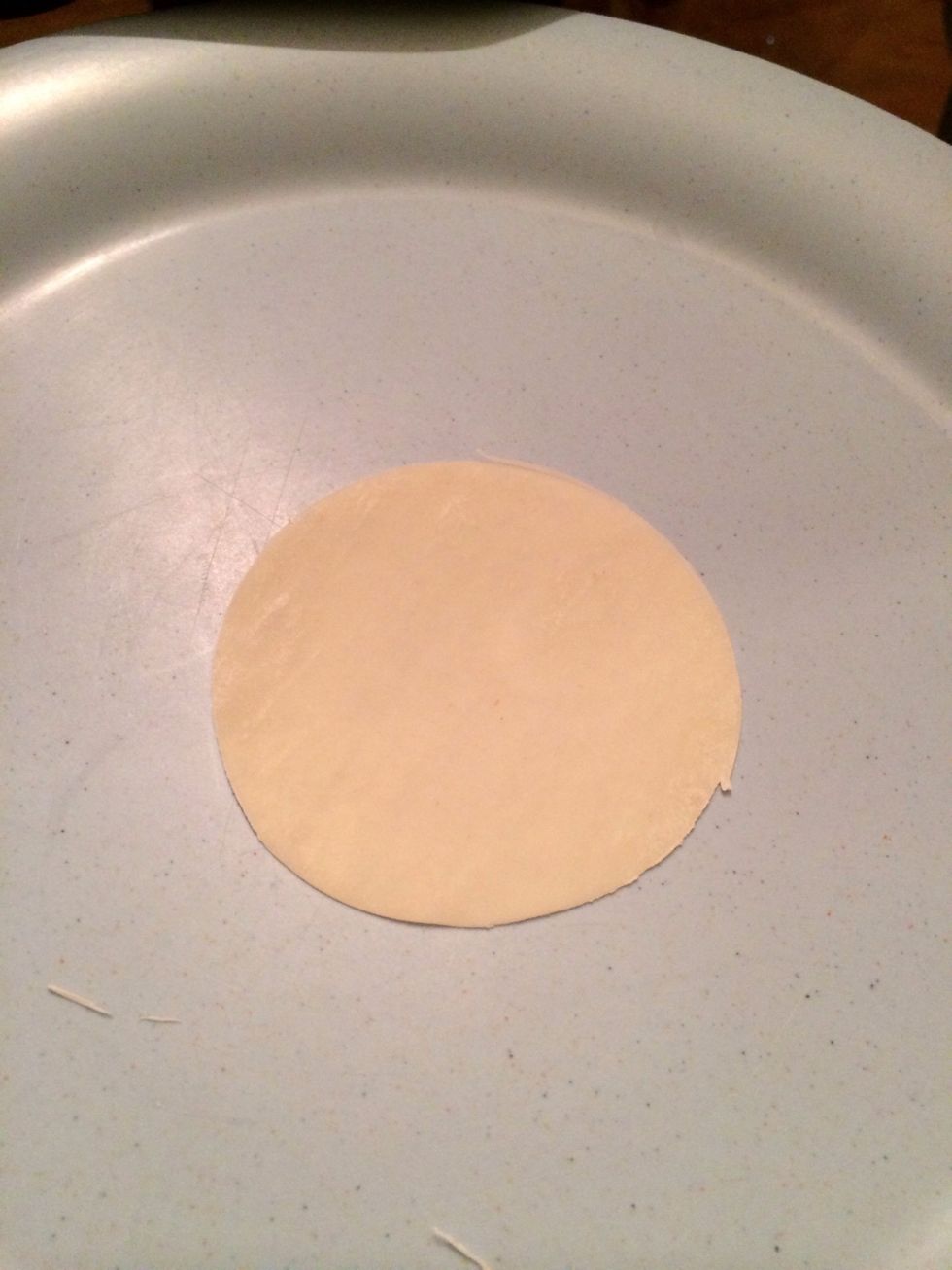 Put the wonton wrapper on a plate. (I got the wonton wrappers from an Asian supermarket)