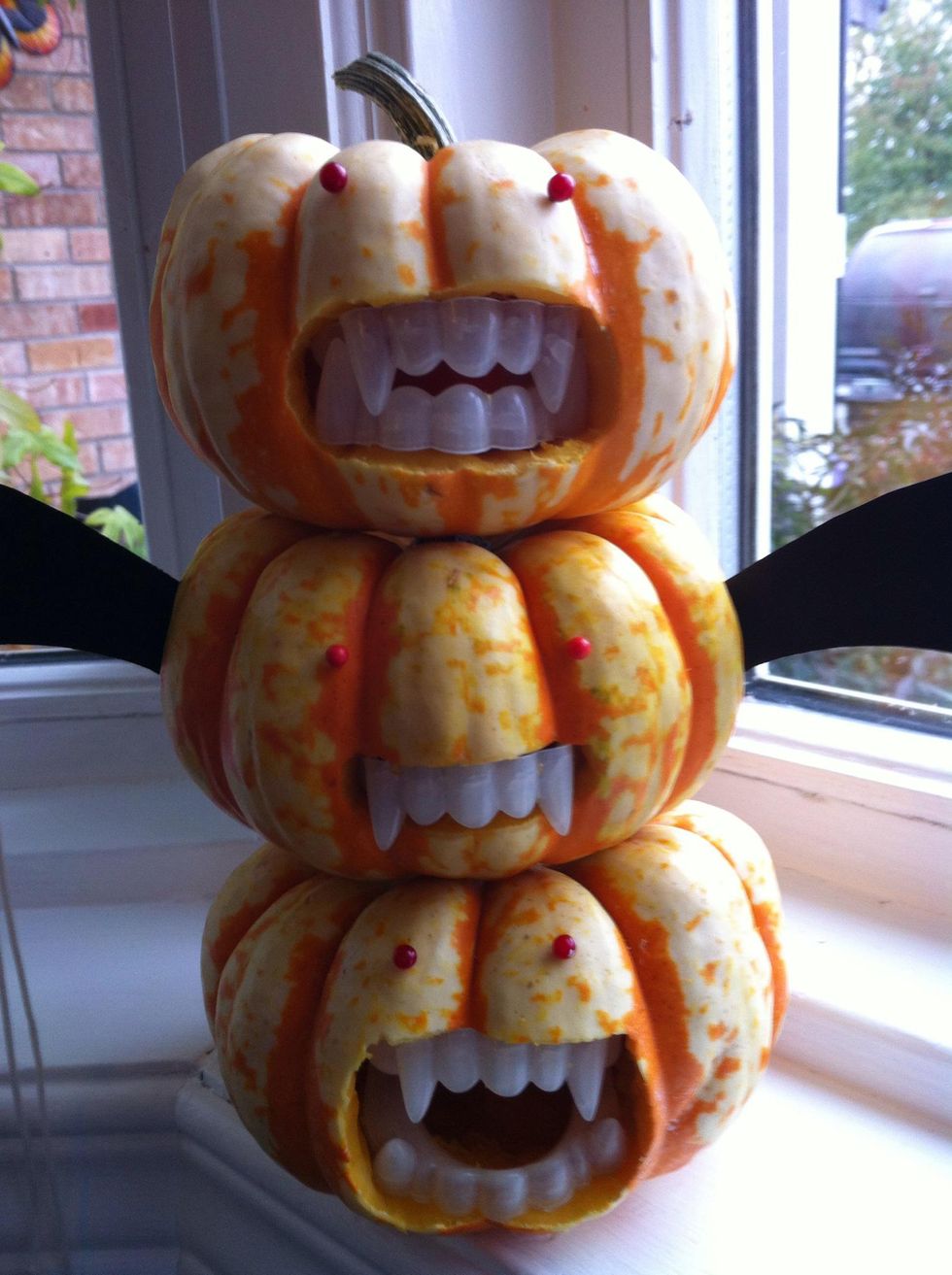 I bought the teeth from the dollar store, the pumpkins from WalMart, and the other things I had around the house.