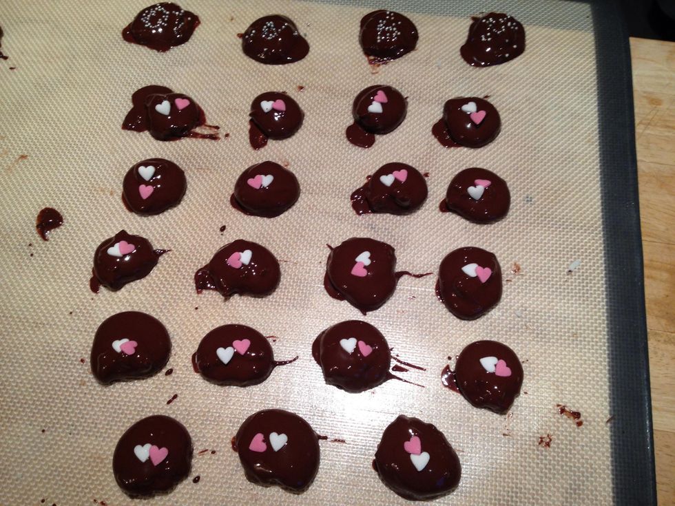 Use two teaspoons to make the mint blobs. Place them on baking paper. Let them cool down for 5 minutes. When you have done the last, the first is firm and ready for the melting pot.