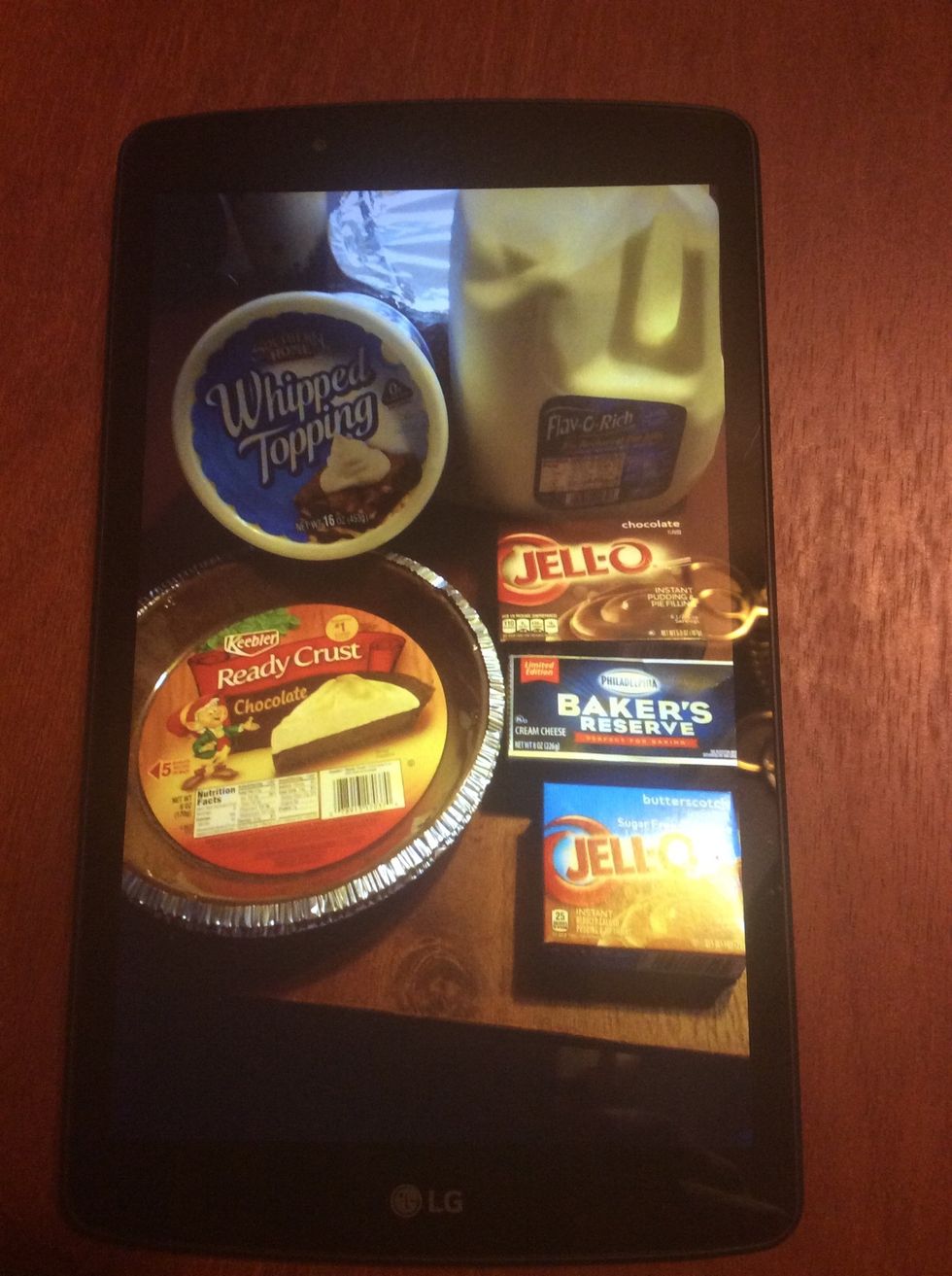 Put chocolate and butterscotch pudding mix and milk in a bowl.