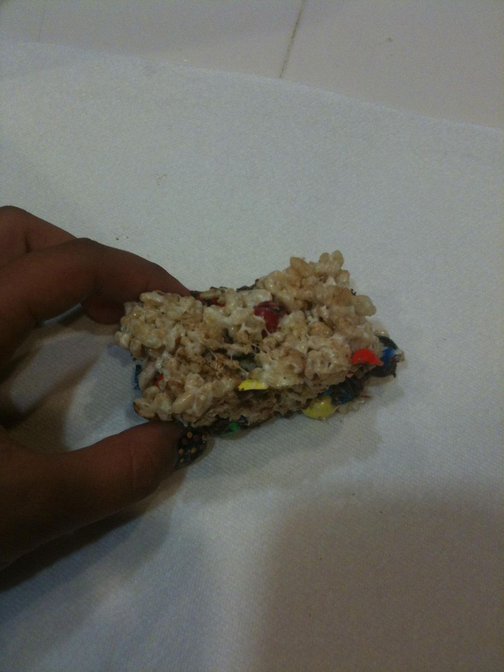 Mix together and then add in M&Ms with the Rice Krispies, Marshmallow, and butter.