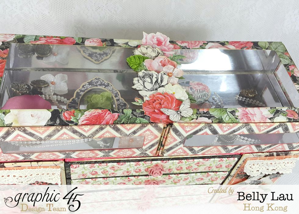 Cover the holes with acetate and then the outside boxes with paper and cardstock as well, then the dresser is almost done.