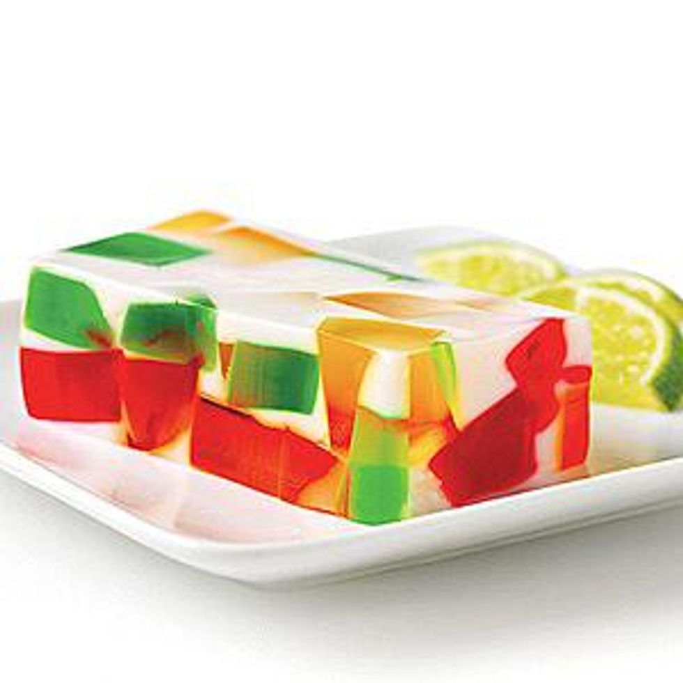 Supplies: Knife, pot, spoon, mixing bowl, measuring cup, four containers (can be lunch boxes or anything that can hold the jello), and a large baking pan.