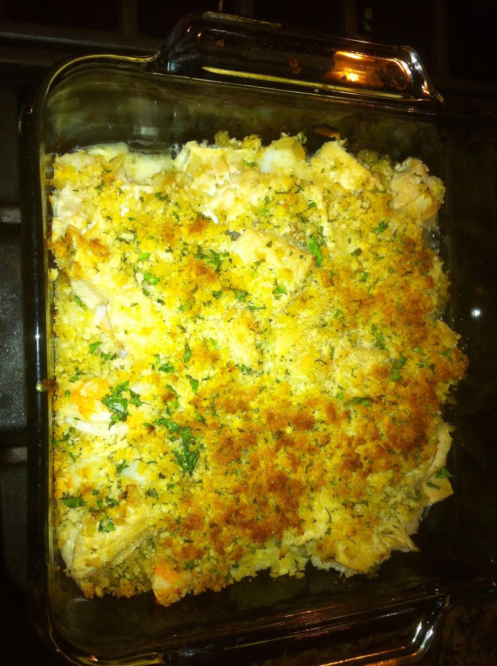 Put mixture in baking dish. Cut a slice of lemon and drizzle over the top.