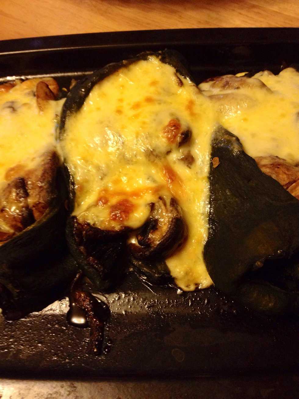 Stuff chiles evenly with mushrooms. Top each with 1/4 of cheese.