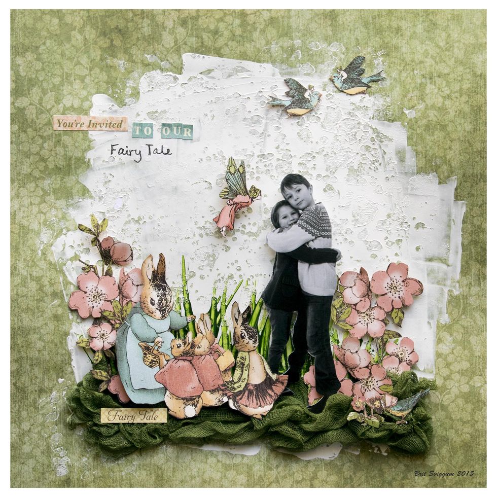 I have the same ammount of foam dots under the fairy as I did under my picture. So it looks like she is looking at them. If I used less foam dots, it would have looked like she was behind them.