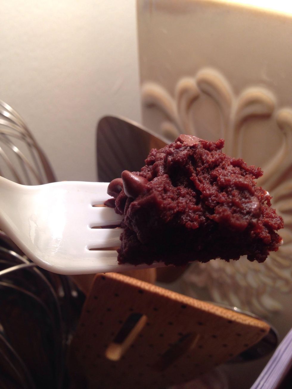 Sprinkle in the chocolate chips and microwave for 60-90 seconds or until it's no longer liquid. (I did mine at 60% power because I like mine a little doughy) :)