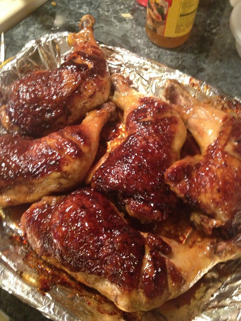 Don't forget the other side. Once all the sides are basted put it uncovered in the oven for about 30 minutes. Depending ofcourse how big or small your chicken pieces are!😉