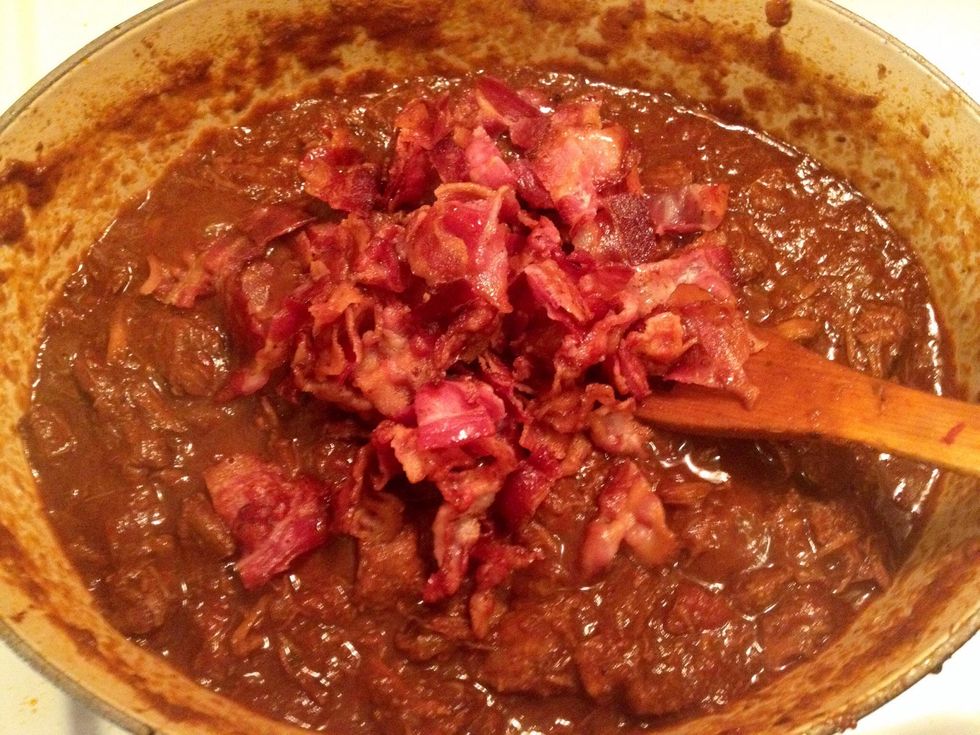When you have cooked the chili for about 2 1/2 hours prepare the bacon.
