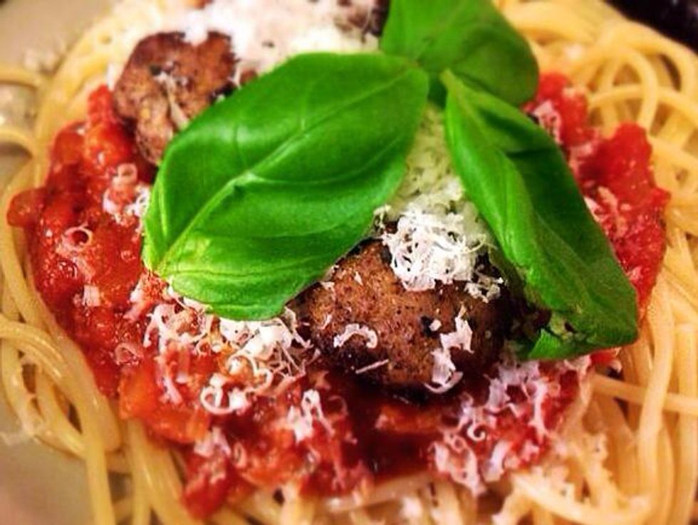 Serve with your favorite pasta, a nice homemade tomato sauce, freshly grated parmesan and perhaps some basil. Enjoy!