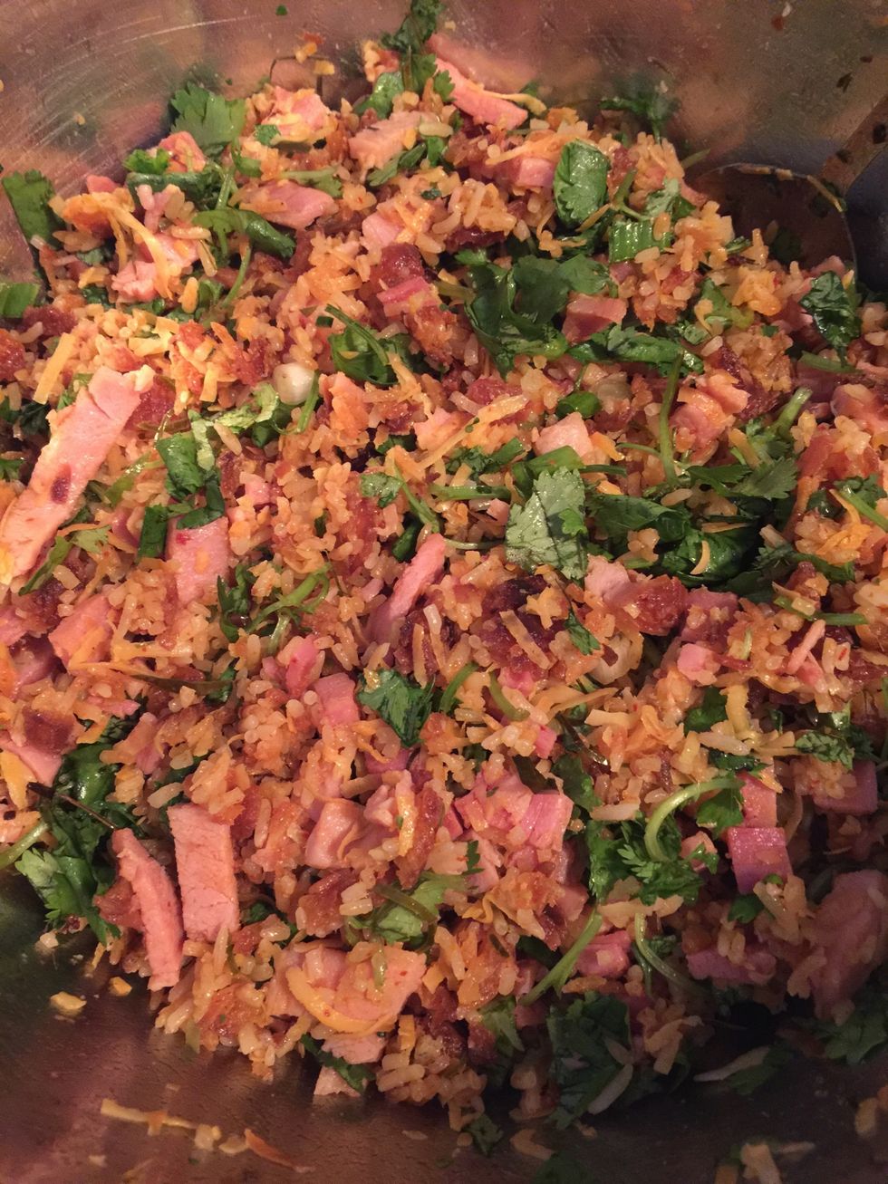 Mix yolks into rice mixture. The best way is by hand. And I recommend wearing gloves.