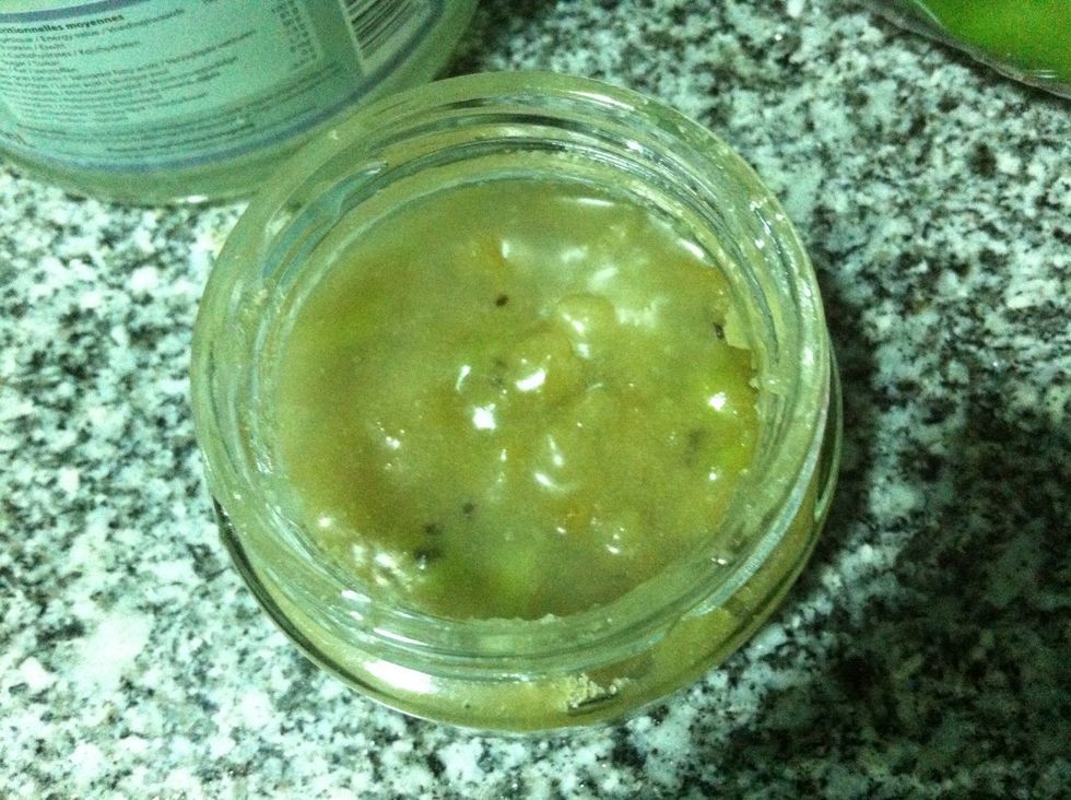 Take the pulp of half kiwi (and eat the other half :) ) and mix with the oil, breaking it into small parts