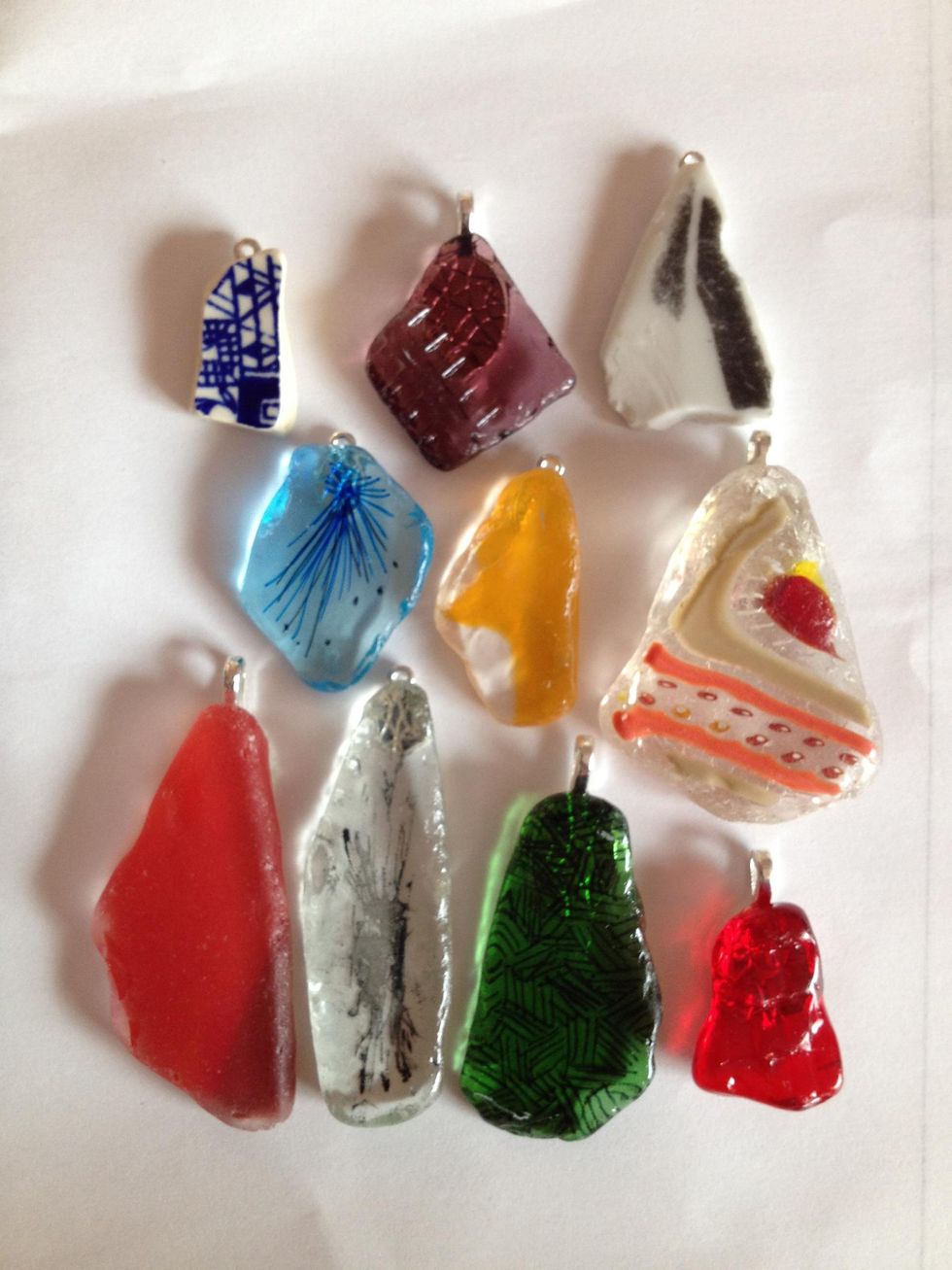 So here's an example - I actually found this piece of glass just like this, with all kinds of colors already in it. Put a dot of glue where you want to put the bail.