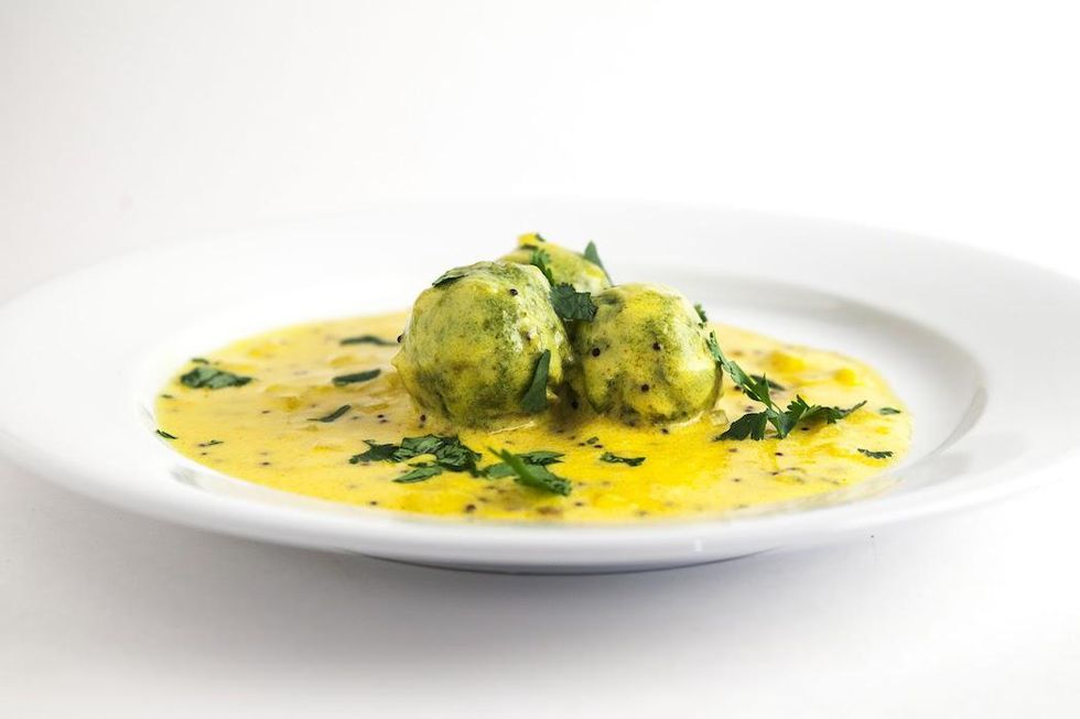 Place the nettle or spinach balls into the warm yogurt mixture. Warm the koftas in the yogurt sauce when they're heated through, sprinkle them with a bit of chopped fresh cilantro and serve them up.